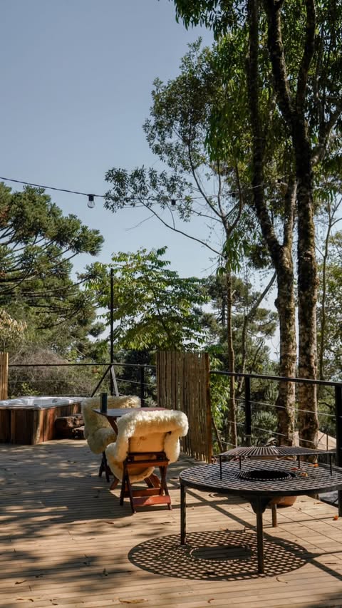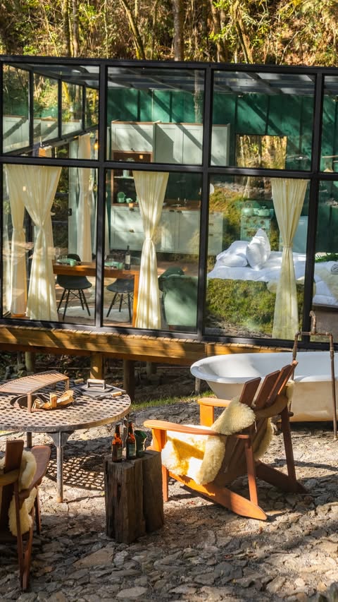 Cada detalhe foi pensado para proporcionar uma imersão sensorial completa, onde o silêncio da mata e o design sofisticado se encontram.